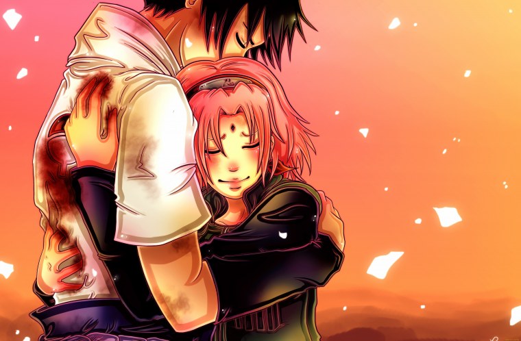 Саске и Сакура обнимаются в аниме