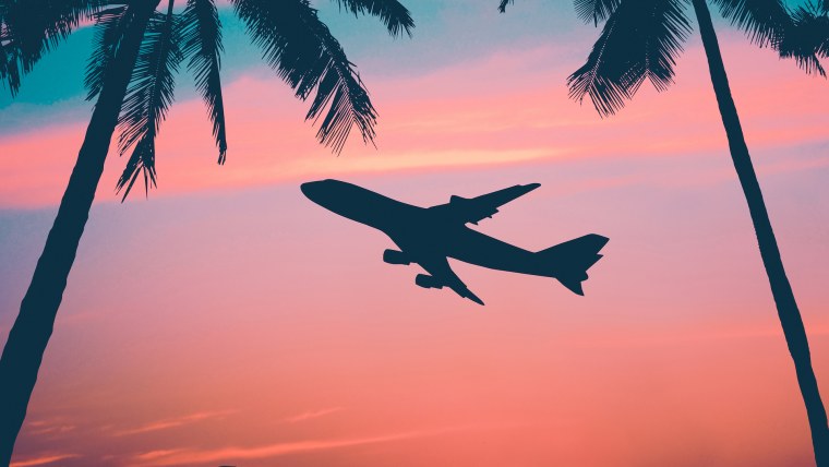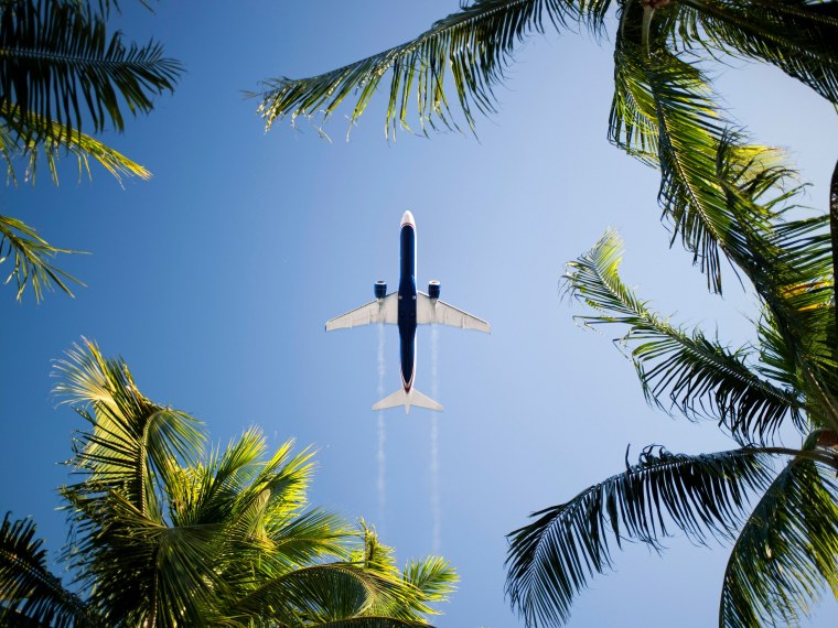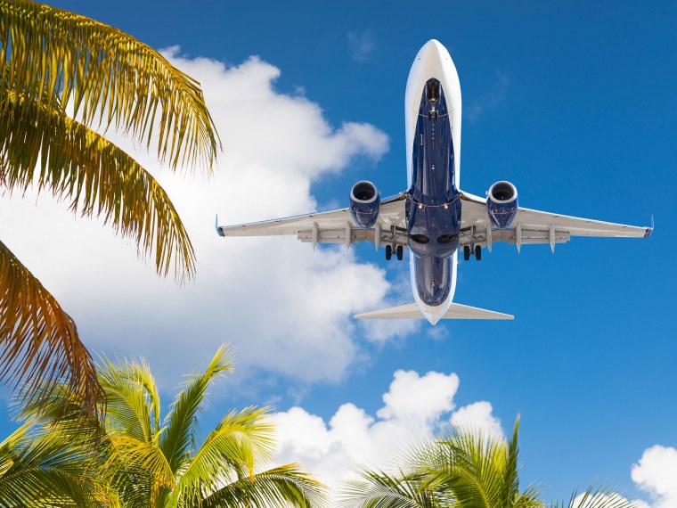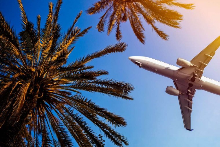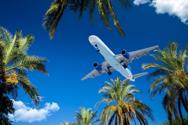 ![Самолет пальмы пляж]()