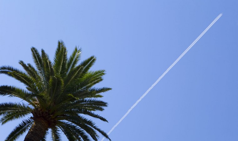 ![Самолет в небе пальмы]()
