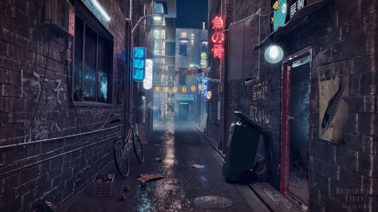 Аниме фон тёмный переулок ночью