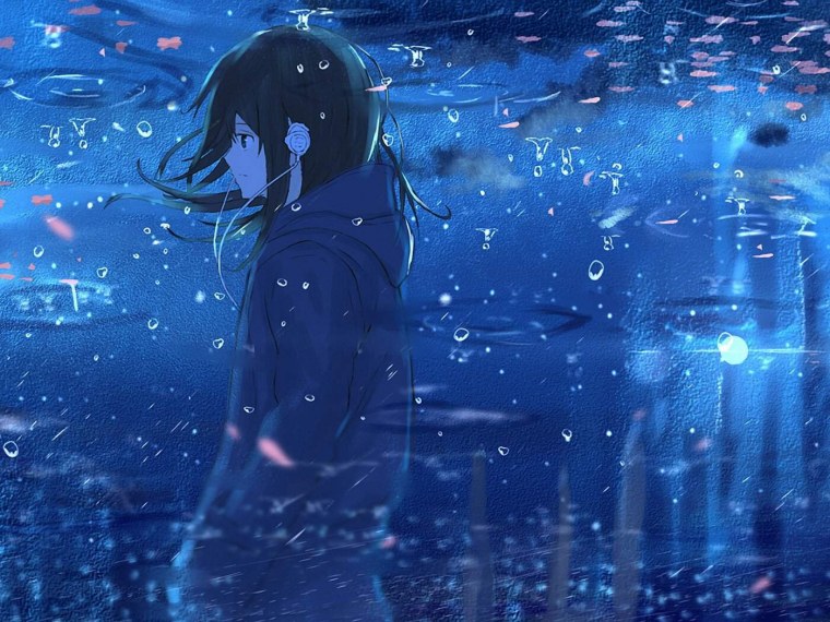 Аниме девушка под дождем
