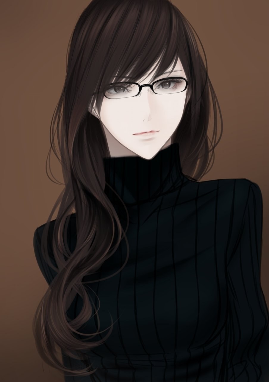 Аниме брюнетка в очках