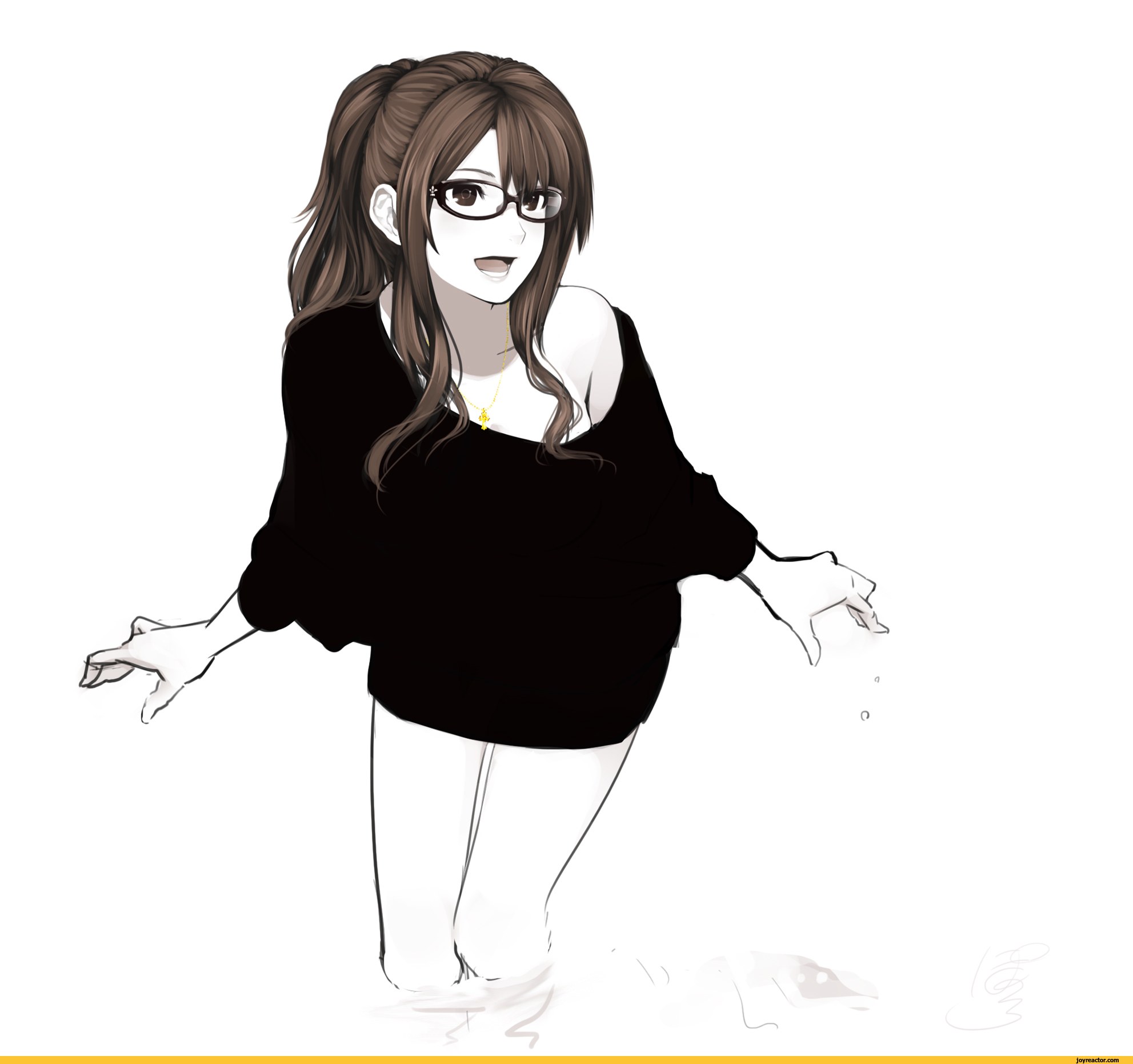 ![Аниме девушка в очках и свитере]()