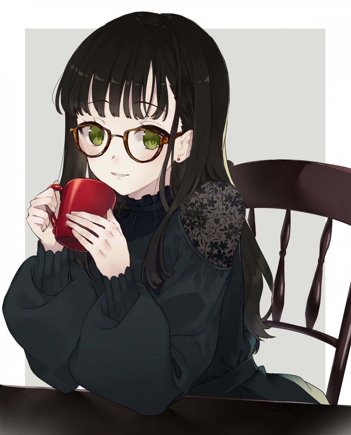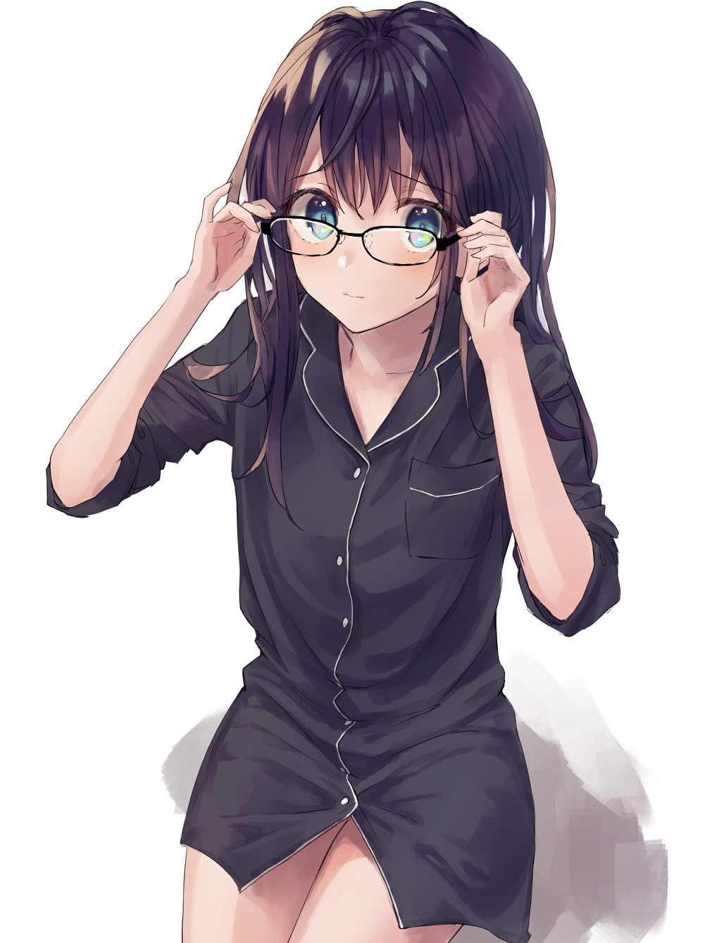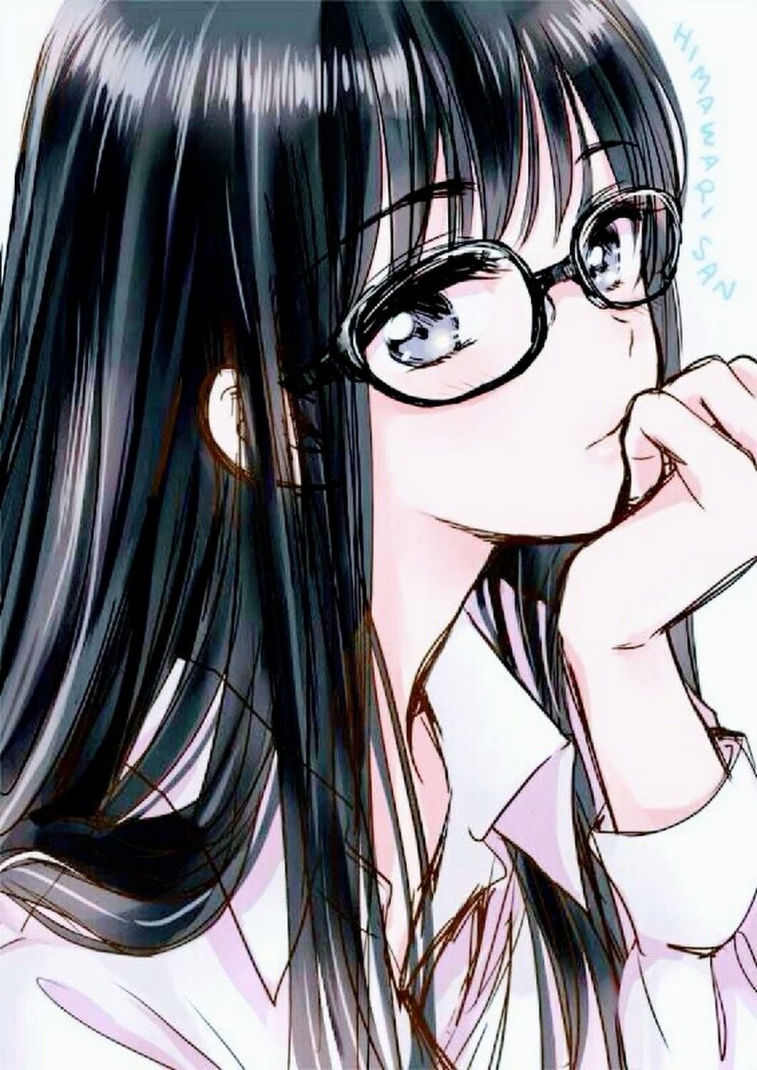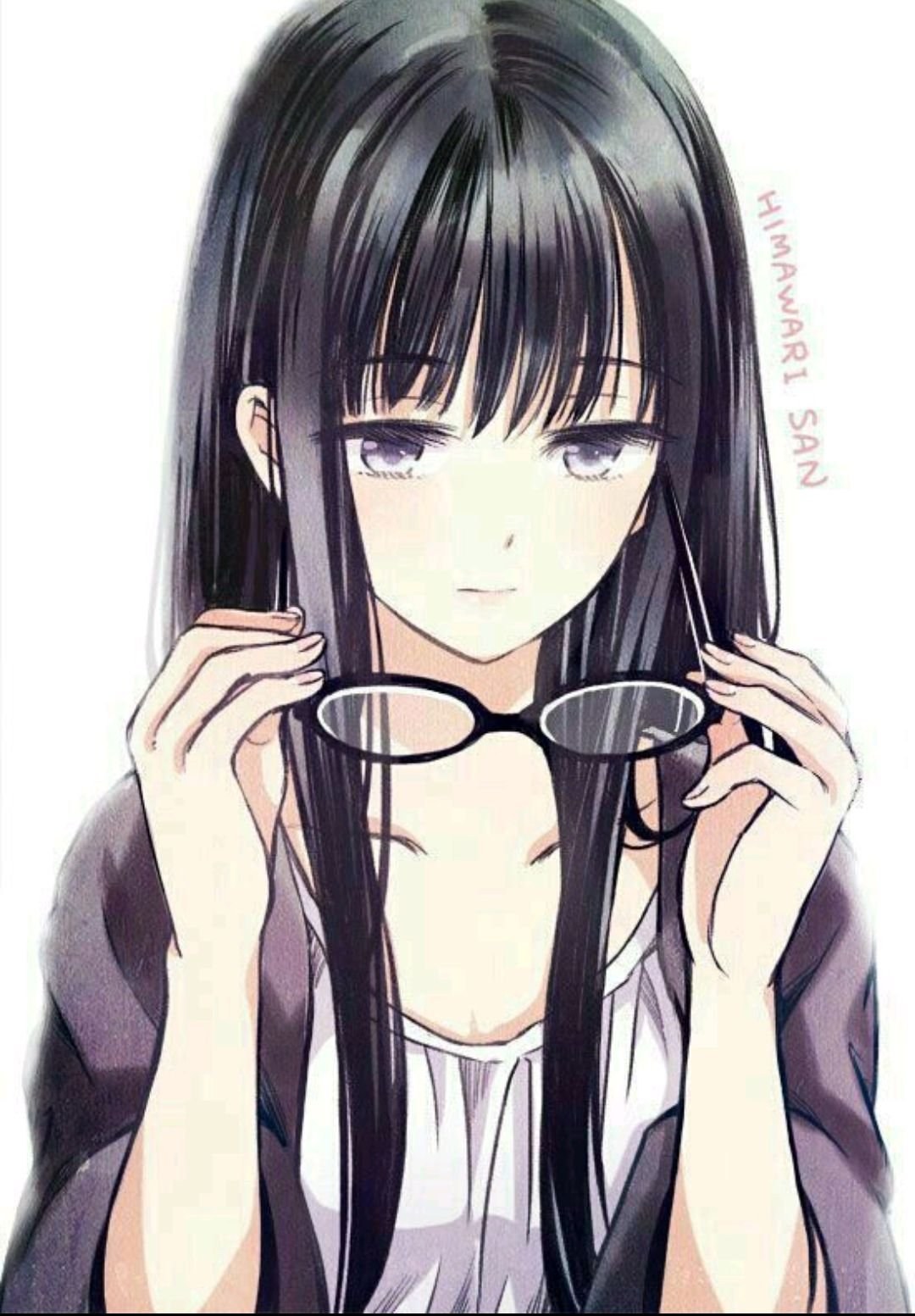 ![Аниме девушка с черными волосами и в очках]()