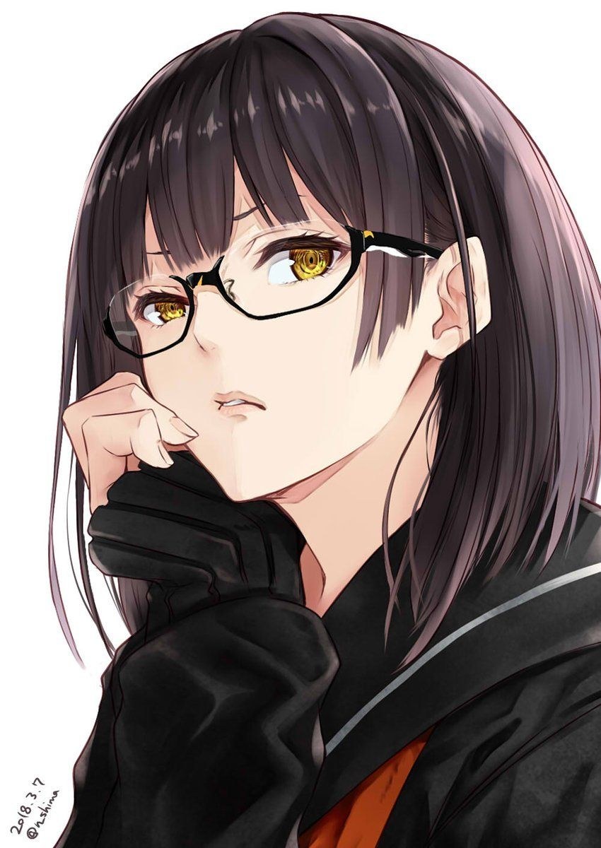 ![Аниме брюнетка в очках]()