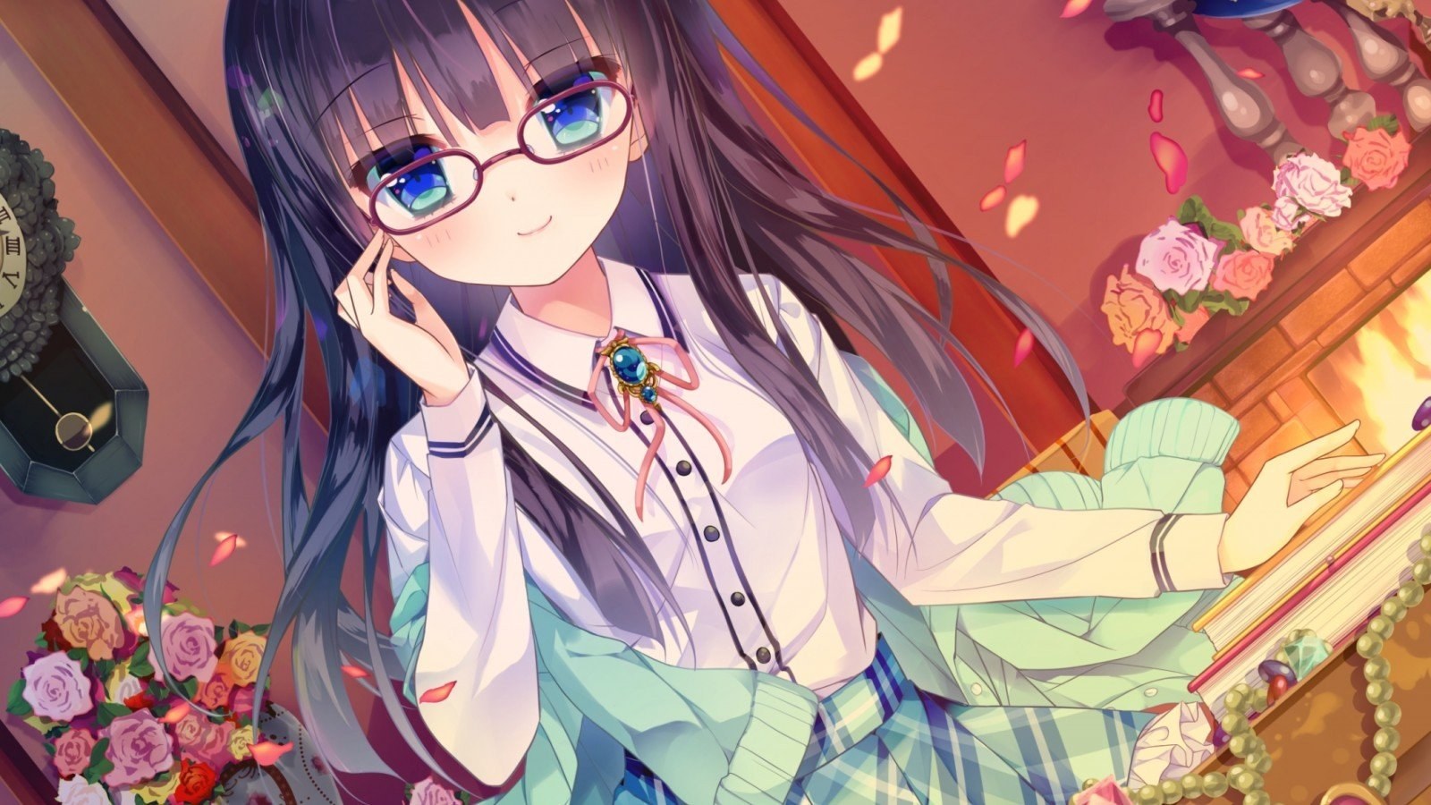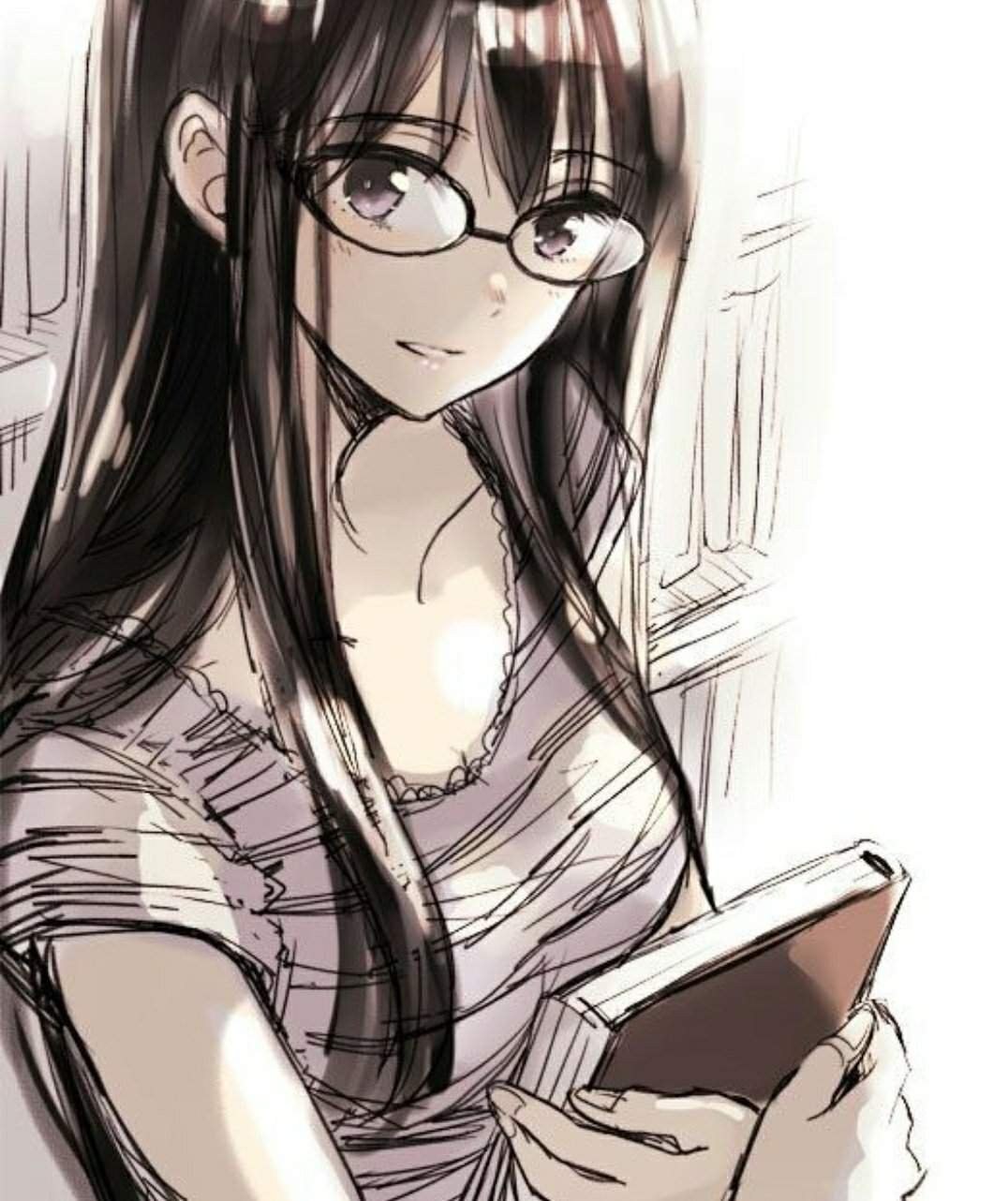Аниме девушки в очках и длинными волосами
