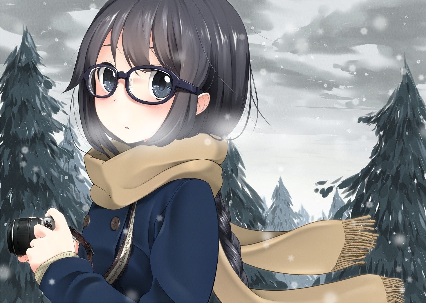Аниме девушка в очках и свитере