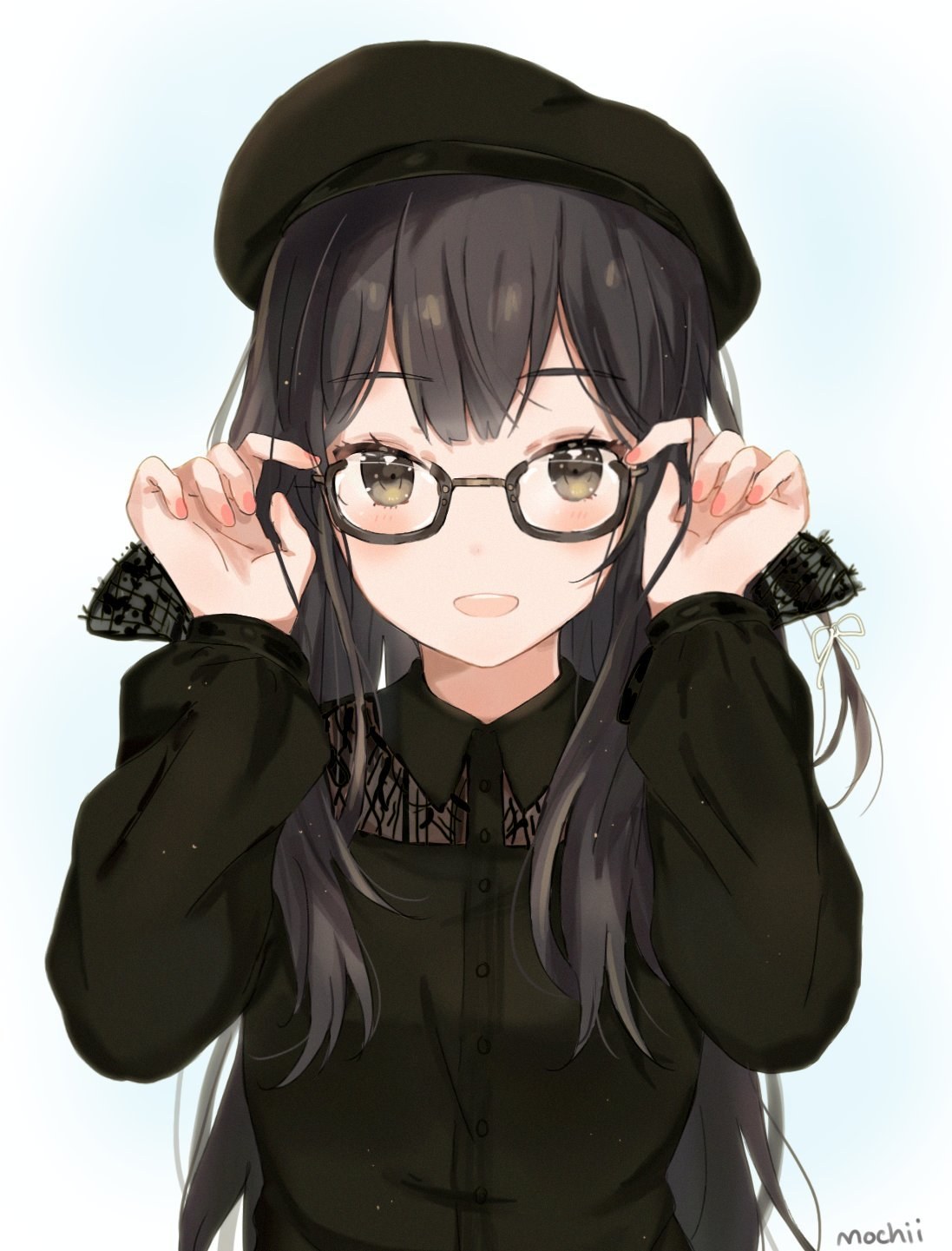 Аниме девушка с черными волосами и в очках