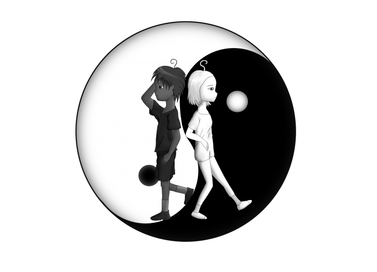 Ангел и демон на черном фоне