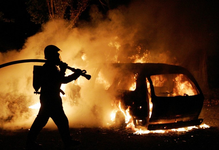 ![Полицейская машина горит]()