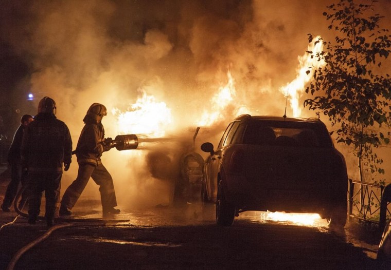 ![Горящие автомобили]()