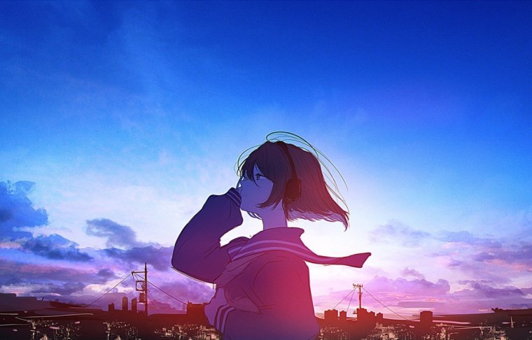 Аниме девушка на закате