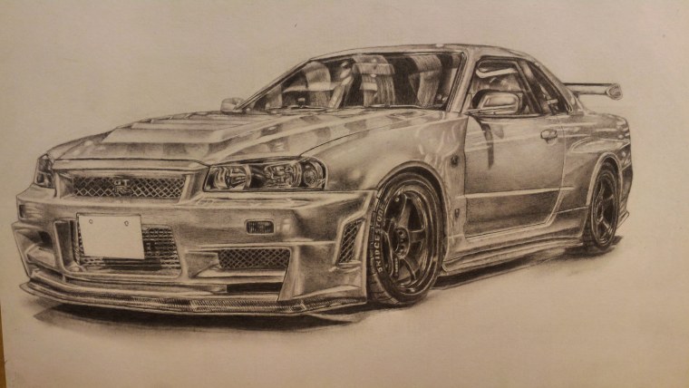 ![Nissan GTR 34 draw]()