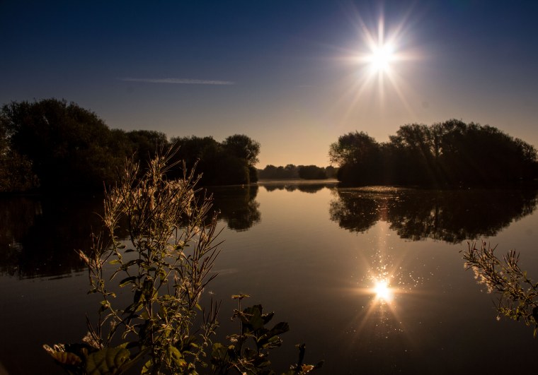 ![Отражение солнца в озере]()