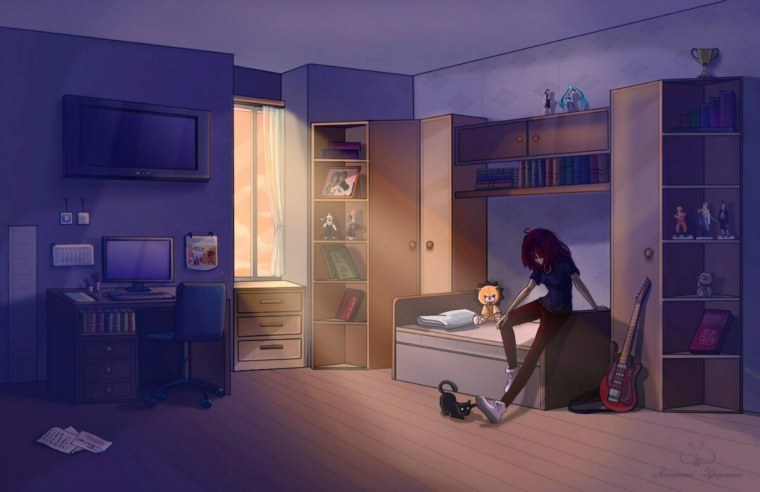 Аниме комната ночью