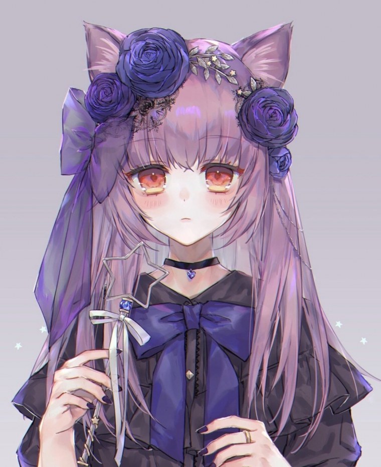 ![Аниме девушка с цветком]()