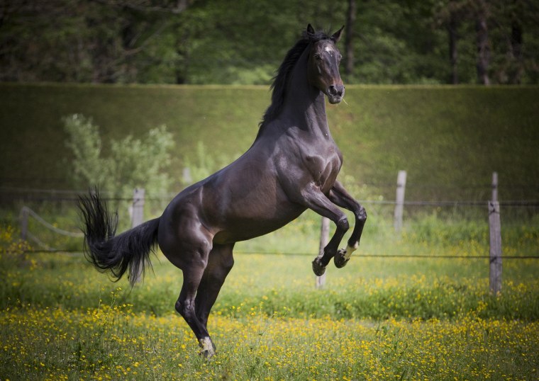 Фризская лошадь на дыбах
