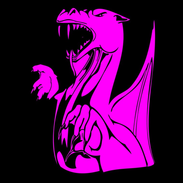 Розовый дракон на черном фоне