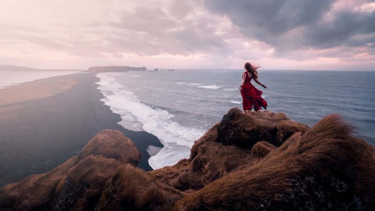 ![Девушка на обрыве скалы]()