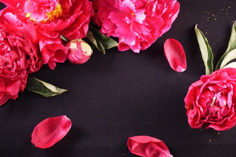 ![Букет пионов на черном фоне]()