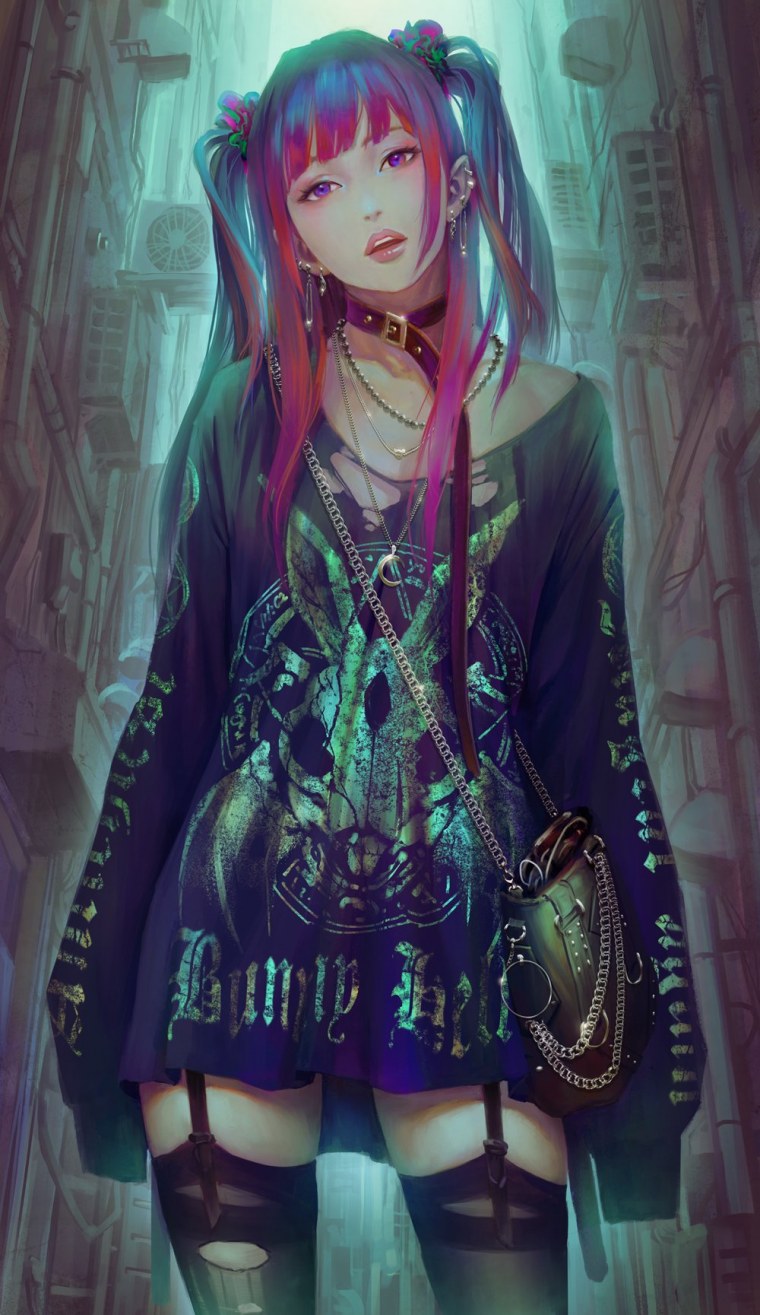 ![Арт девушки с необычным цветом волос]()