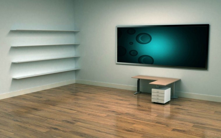 Обои на рабочий стол комната со столом и полками Минимализм