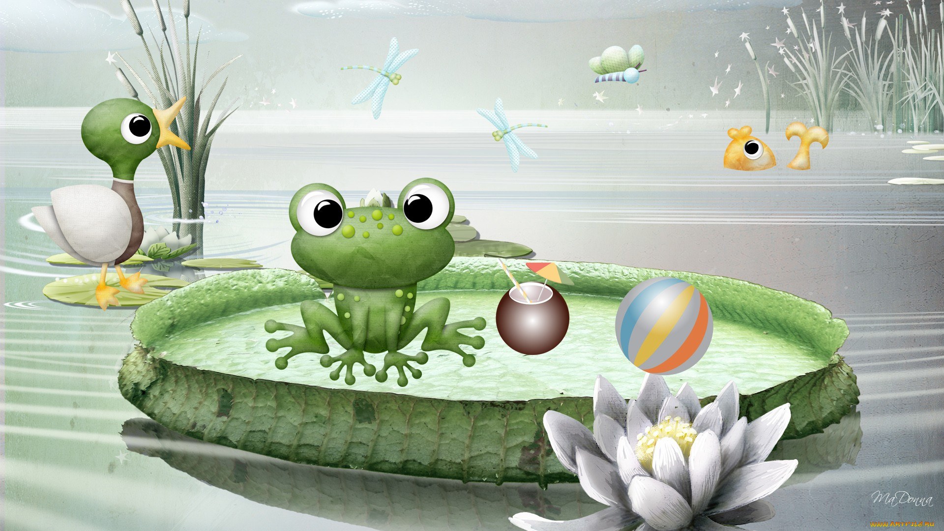 ![Обои на ПК С лягушками]()