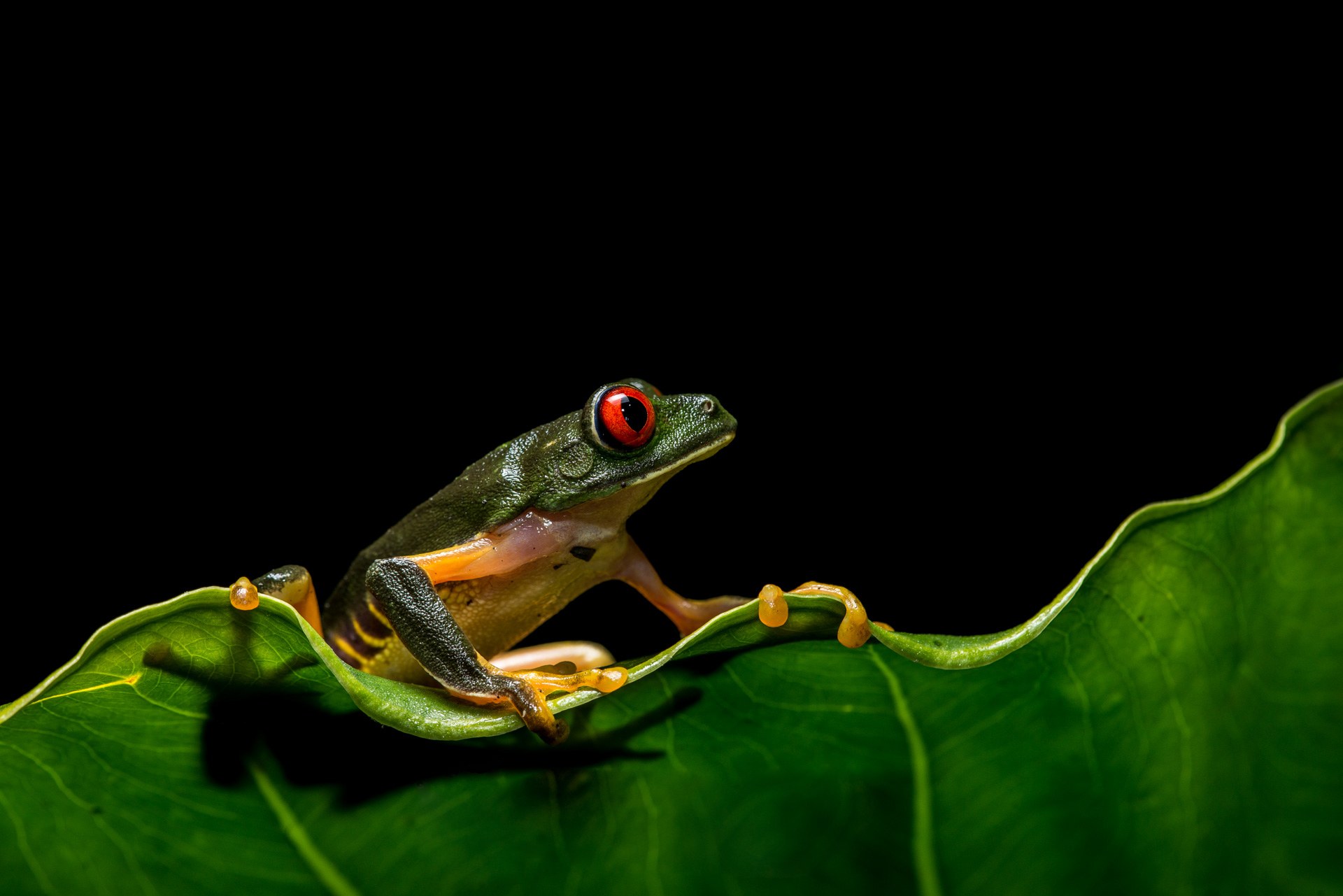 Лягушка древолаз зеленая с оранжевыми глазами