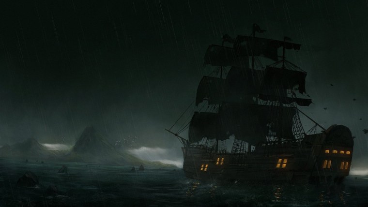 ![Пиратский корабль в шторм]()