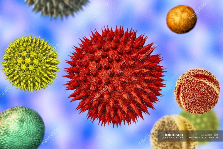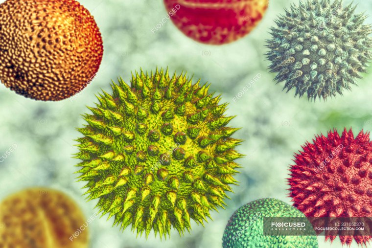 ![Пыльца под микроскопом на белом фоне]()