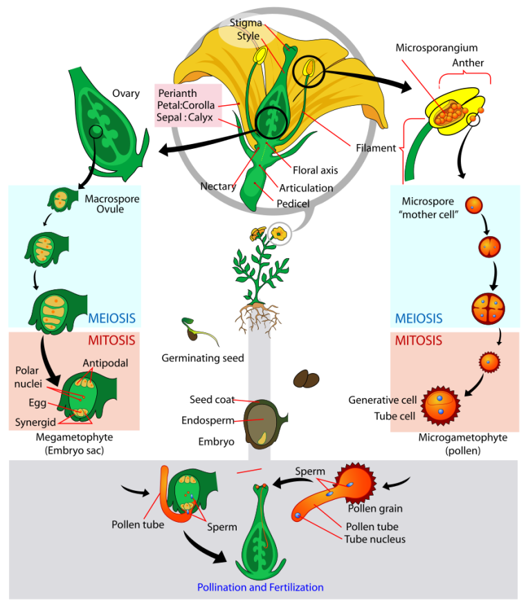 Схема полового размножения цветковых растений