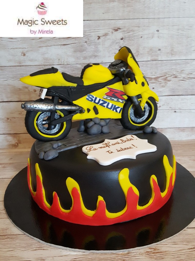 ![Торт с гоночным мотоциклом]()