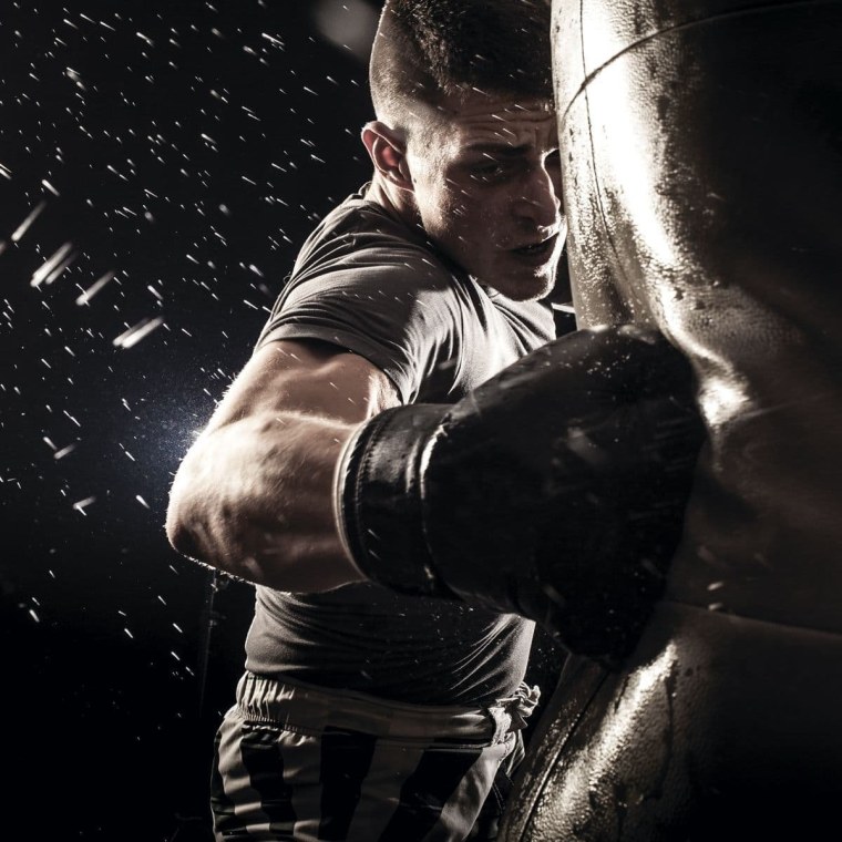 ![Боксер бьет грушу]()