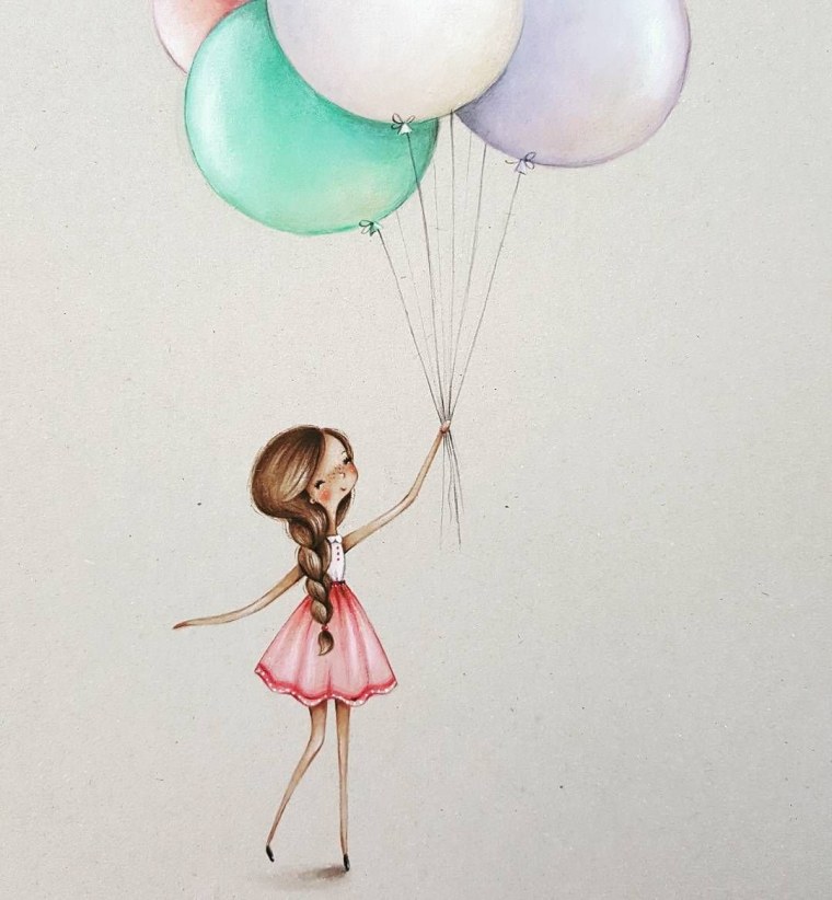 ![Нарисованная девочка с шариками]()