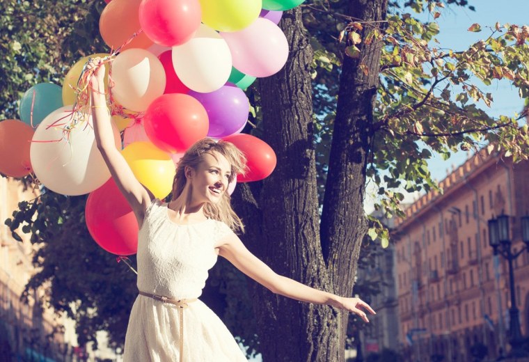 ![Женщина с воздушными шариками]()