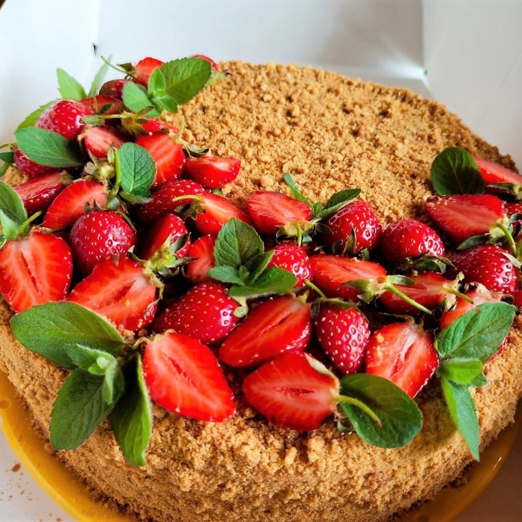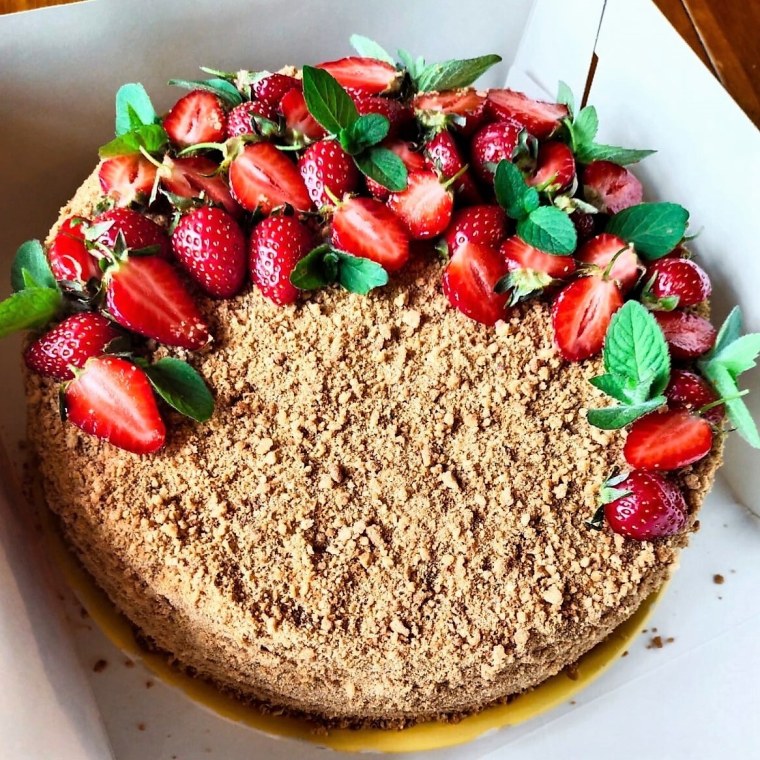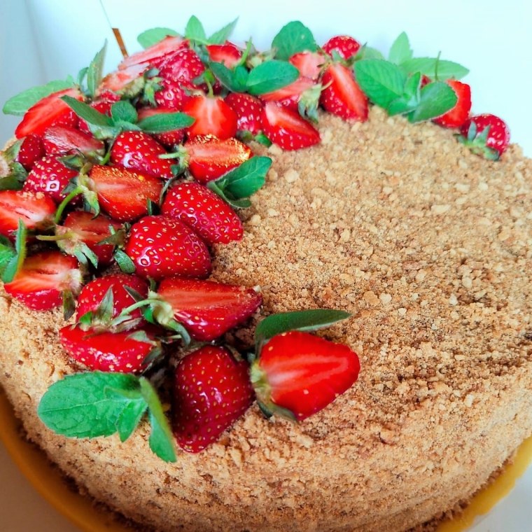 Медовик украшенный клубникой