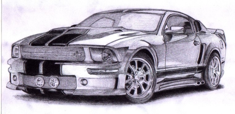 ![Машины карандашом Mustang a4]()