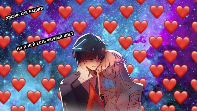 ![Аниме персонажи с сердечками]()