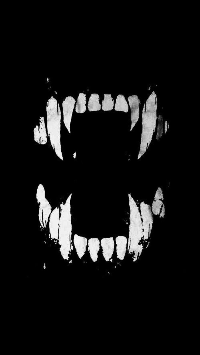 ![Вампирские зубы на черном фоне]()
