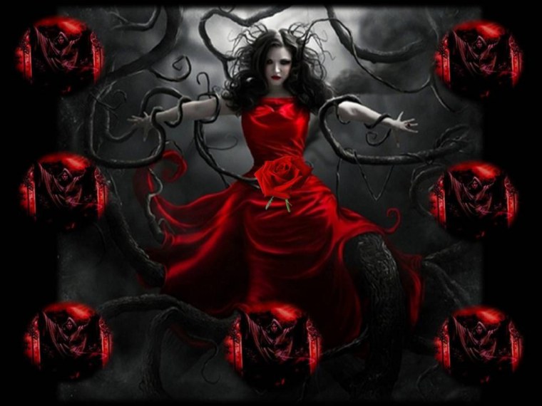 ![Ведьма в черно красных тонах]()